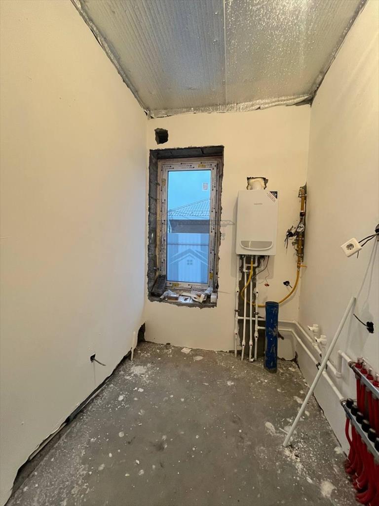 Дом оснащён всеми необходимыми коммуникациями: подведены газ и электричество, есть центральное водоснабжение. Фундамент — ленточный с буронабивными сваями, что гарантирует прочность и устойчивость конструкции.<br />