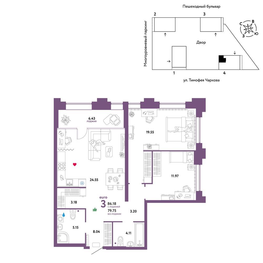 | Трехкомнатная квартира по ул. Тимофея Чаркова, 93 в Тюмени |