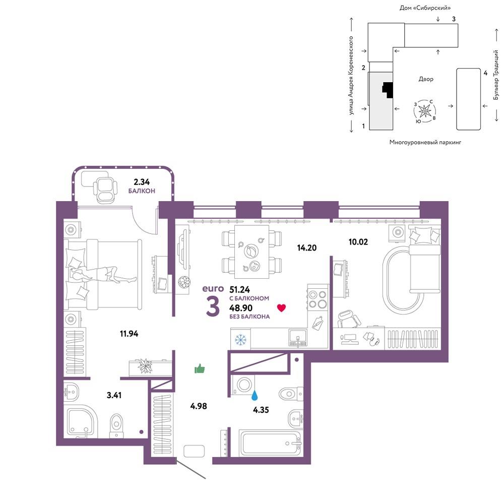 6 041 000 р. (117 896 р./м2) Подать заявку на ипотеку |