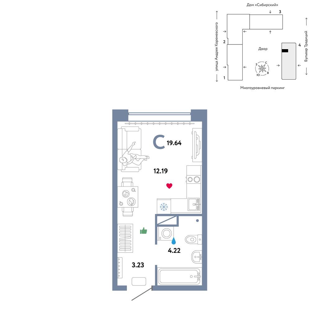 квартира 19,64 м2 по ул. Андрея Кореневского 7 за 3295000 руб. |