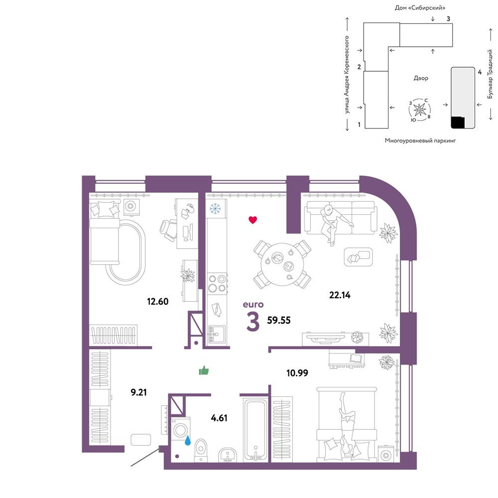 | Трехкомнатная квартира по ул. Андрея Кореневского, 7 в Тюмени |