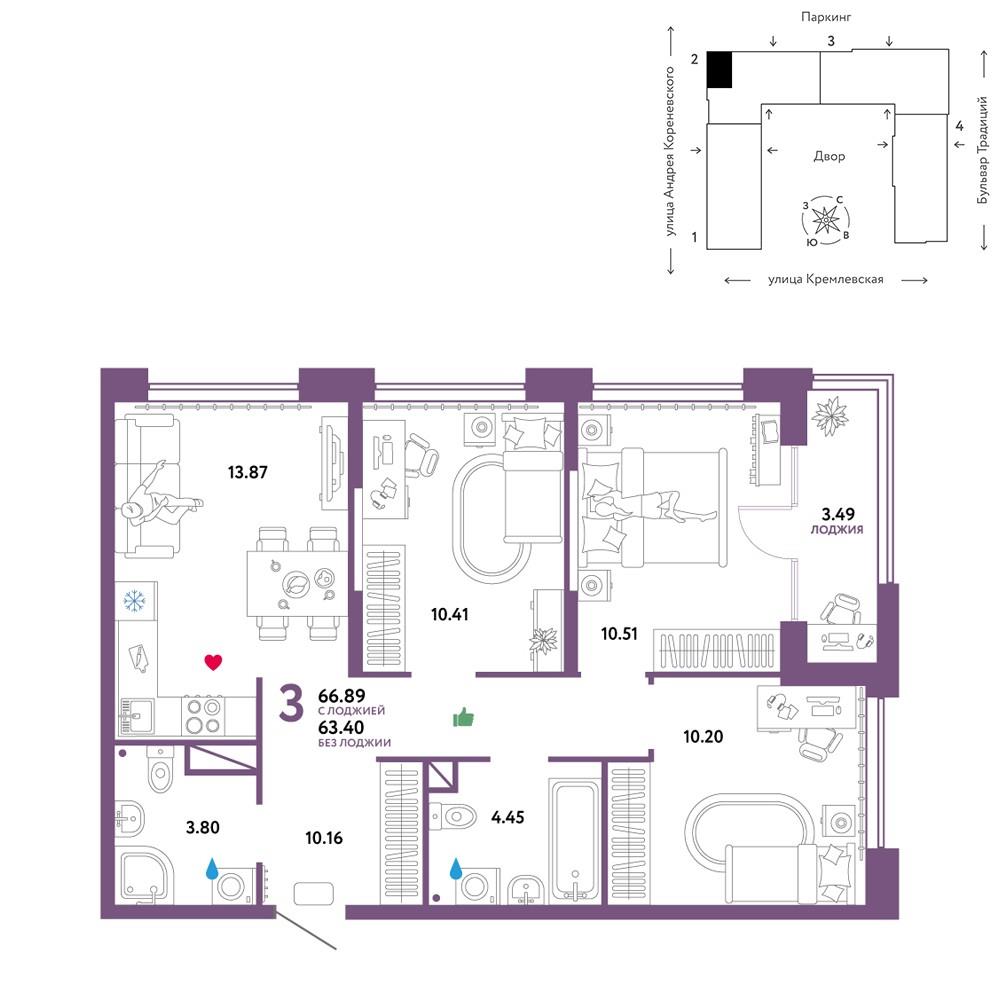 | Трехкомнатная квартира по ул. Андрея Кореневского, 11 в Тюмени |