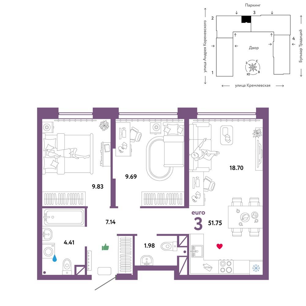 5 914 000 р. (114 280 р./м2) Подать заявку на ипотеку |