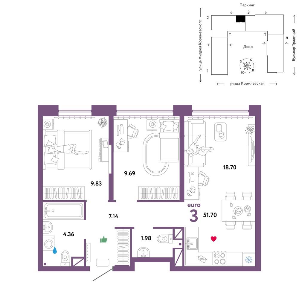 5 914 000 р. (114 391 р./м2) Подать заявку на ипотеку |