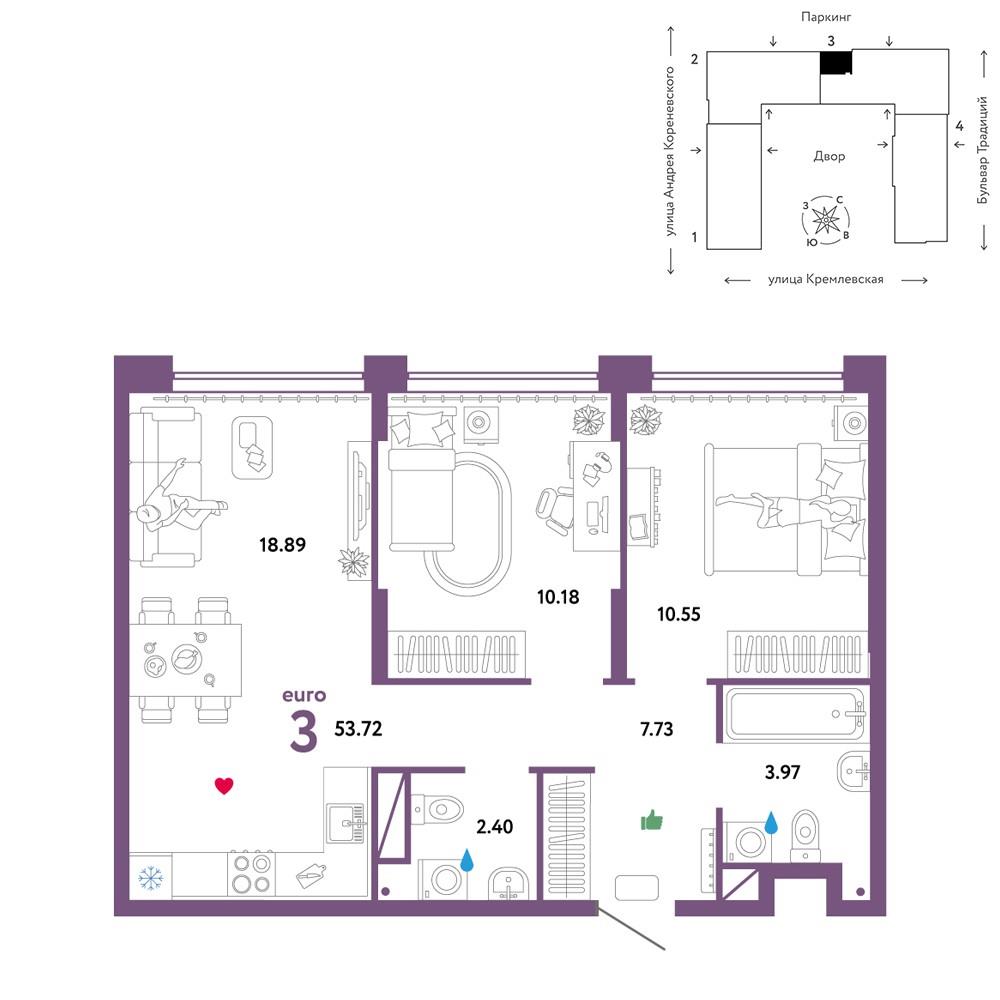 5 914 000 р. (110 089 р./м2) Подать заявку на ипотеку |
