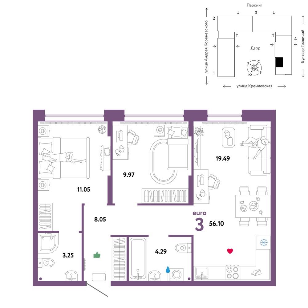 | Трехкомнатная квартира по ул. Андрея Кореневского, 11 в Тюмени |
