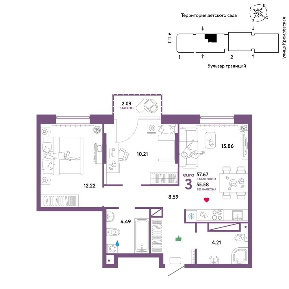 6 590 000 р. (114 271 р./м2) Подать заявку на ипотеку |