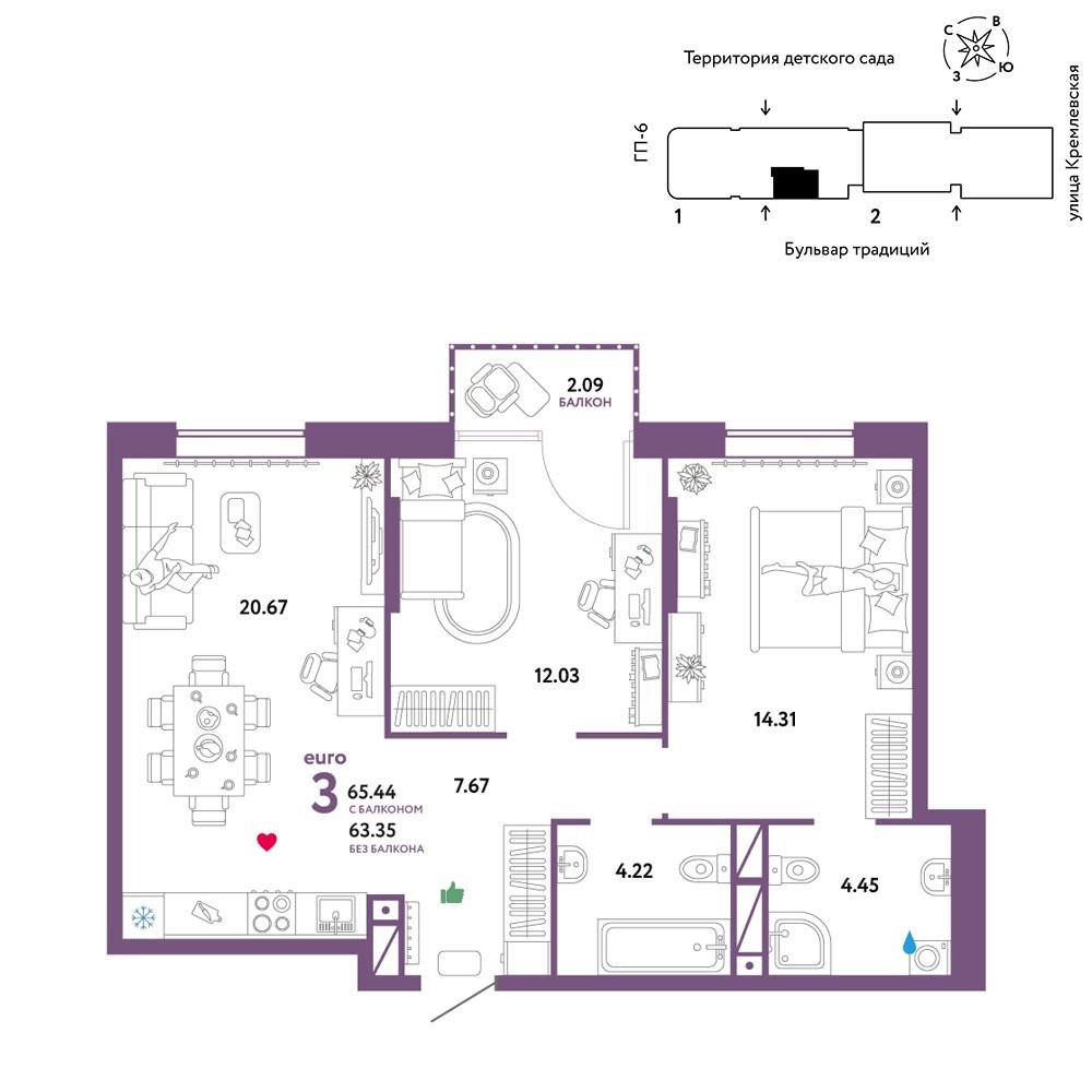 7 390 000 р. (112 928 р./м2) Подать заявку на ипотеку |