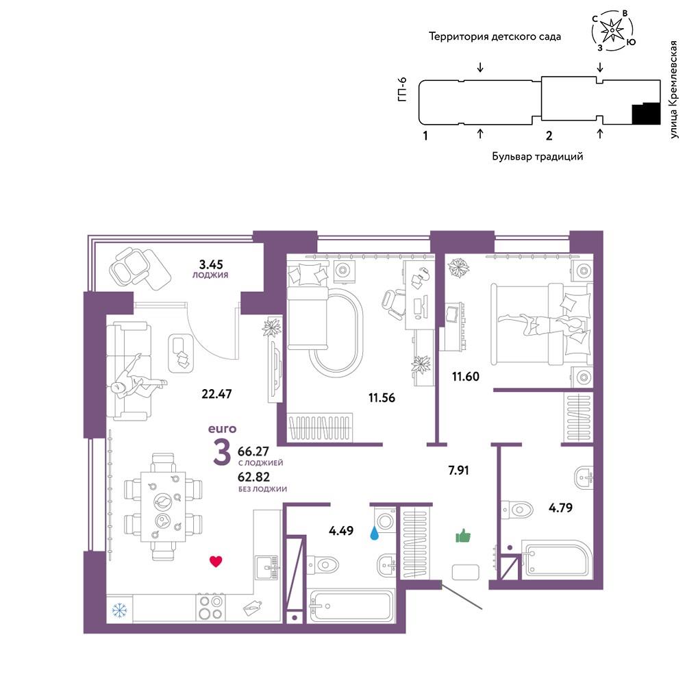7 890 000 р. (119 058 р./м2) Подать заявку на ипотеку |