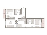 Квартира с кухней-гостиной и двумя спальнями в Октябрьском на Туре. Особенности планировки: вид во двор, лоджия, разнесённые спальни, предчистовая отделка, мастер-спальня, балкон.