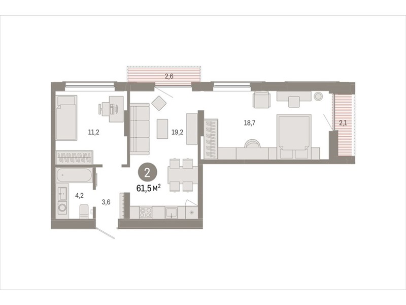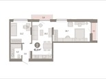 Квартира с кухней-гостиной и двумя спальнями в Октябрьском на Туре. Особенности планировки: лоджия, предчистовая отделка, балкон, разнесённые спальни.
