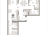 общая 83,37 м2, жилая 20,44 м2, кухни 35,95 м2 |