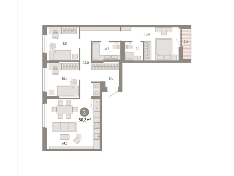 | Трехкомнатная квартира по ул. ул. Краснооктябрьская, 4, корпус 2 в Тюмени |