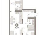 общая 70,89 м2, жилая 24,64 м2, кухни 25,28 м2 |