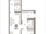 общая 68,28 м2, жилая 24,64 м2, кухни 25,42 м2 |