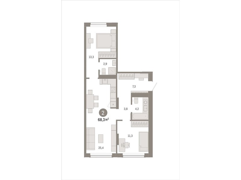 | Двухкомнатная квартира по ул. ул. Краснооктябрьская, 4, корпус 2 в Тюмени |