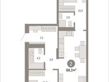общая 68,28 м2, жилая 24,64 м2, кухни 25,42 м2 |