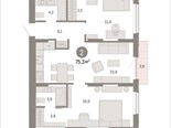 Квартира с кухней-гостиной и двумя спальнями в Октябрьском на Туре. Особенности планировки: вид во двор, разнесённые спальни, предчистовая отделка, мастер-спальня, балкон.