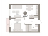 общая 46,08 м2, жилая 12,71 м2, кухни 21,14 м2 |