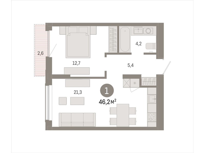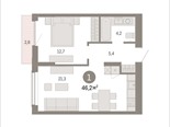 Квартира с кухней-гостиной и одной спальней в Октябрьском на Туре. Особенности планировки: предчистовая отделка, балкон.
