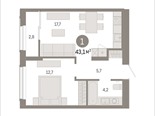 общая 43,09 м2, жилая 12,71 м2, кухни 17,69 м2 |