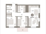 общая 65,02 м2, жилая 20,34 м2, кухни 20,98 м2 |