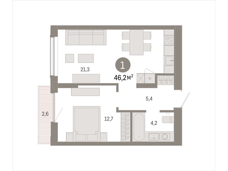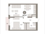 Квартира с кухней-гостиной и одной спальней в Октябрьском на Туре. Особенности планировки: балкон, предчистовая отделка.