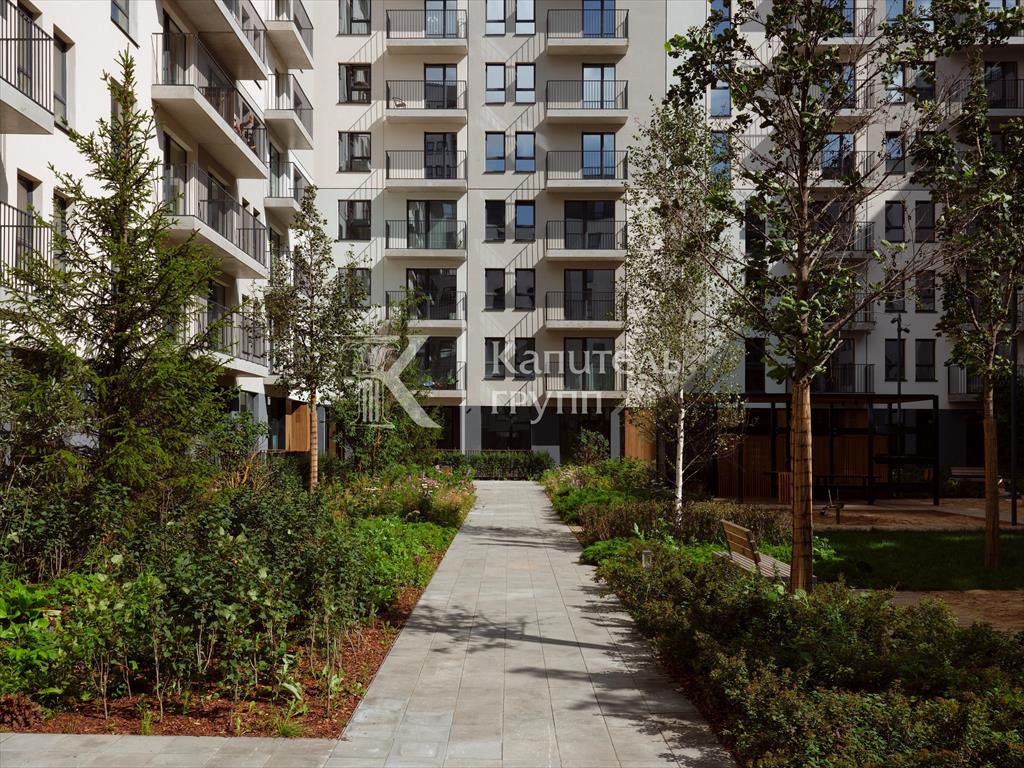 Придомовая территория напоминает лоскутное одеяло. Ландшафтные архитекторы разделили её на прямоугольные фрагменты разных размеров, каждый из которых несёт определенную функциональную ценность. Условной границей между ними служат растения: высокие деревья с уже сформированной кроной, кустарники и травы.<br />