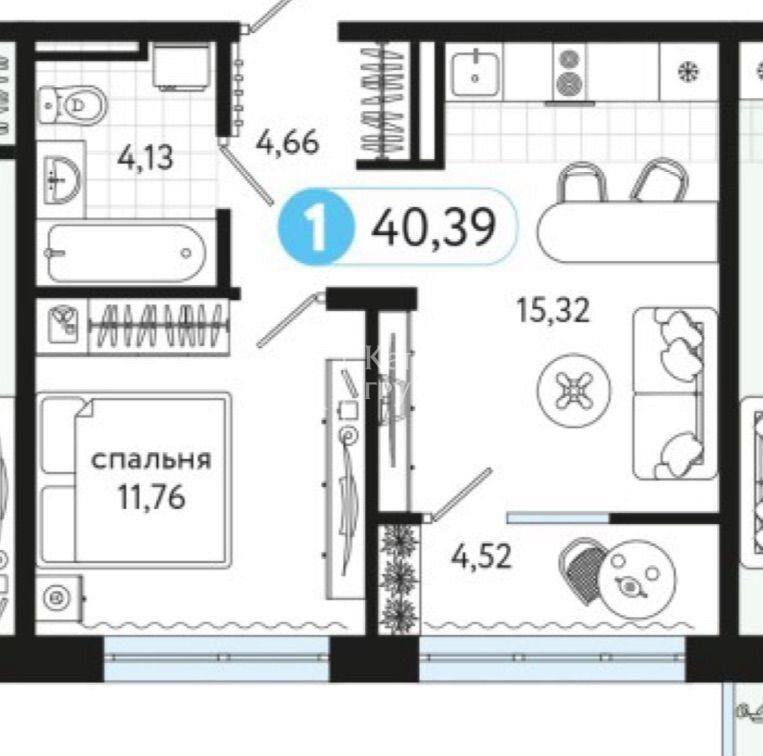 общая 40 м2, жилая 12 м2, кухни 21 м2 |