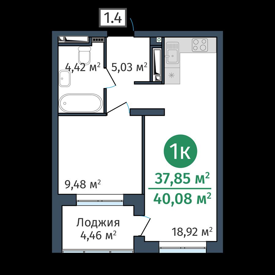 общая 37,85 м2, жилая 0 м2, кухни 18,92 м2 |