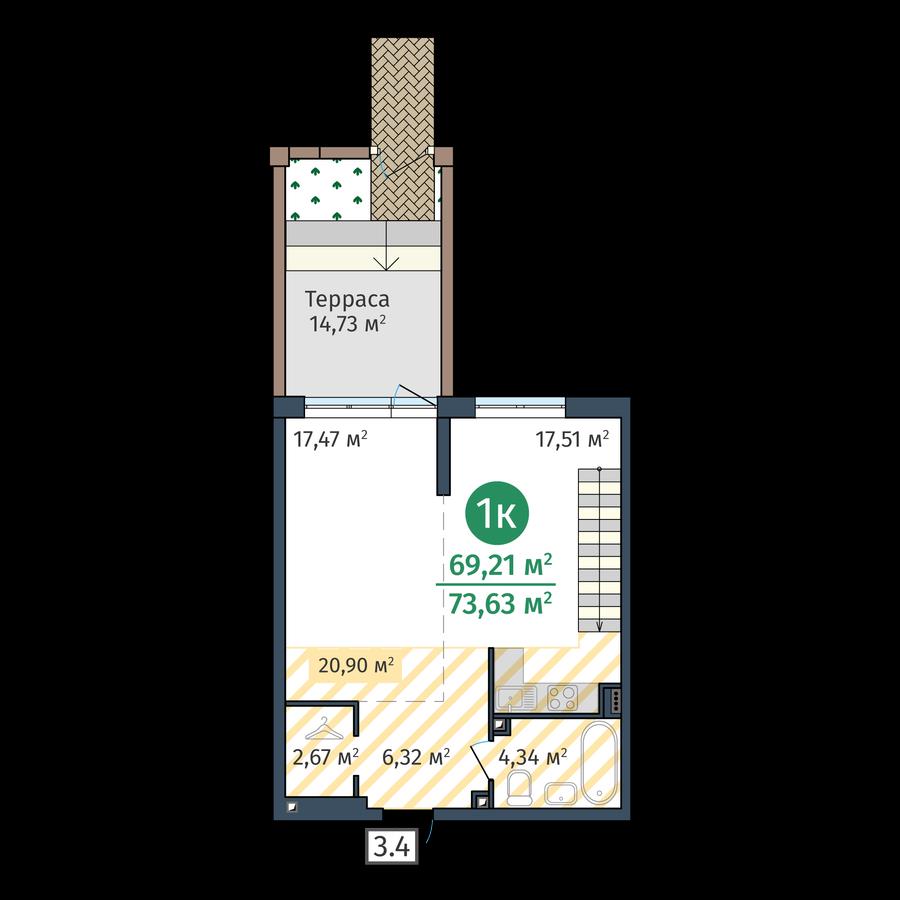 общая 69,21 м2, жилая 0 м2, кухни 17,51 м2 |
