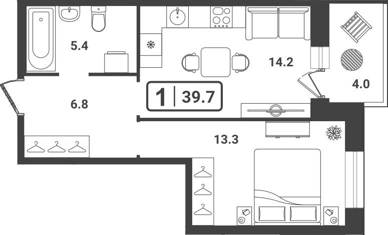общая 39,75 м2, жилая 0 м2, кухни 0 м2 |