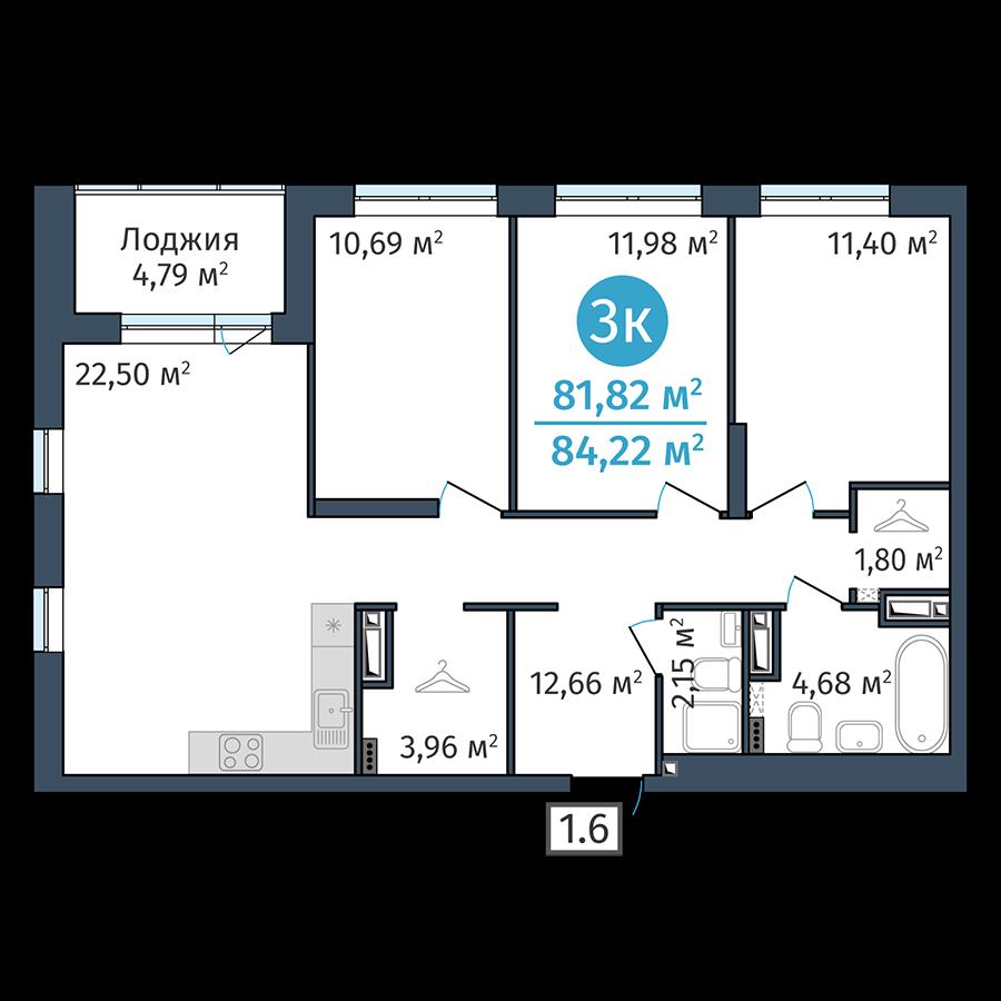 общая 81,82 м2, жилая 0 м2, кухни 22,5 м2 |