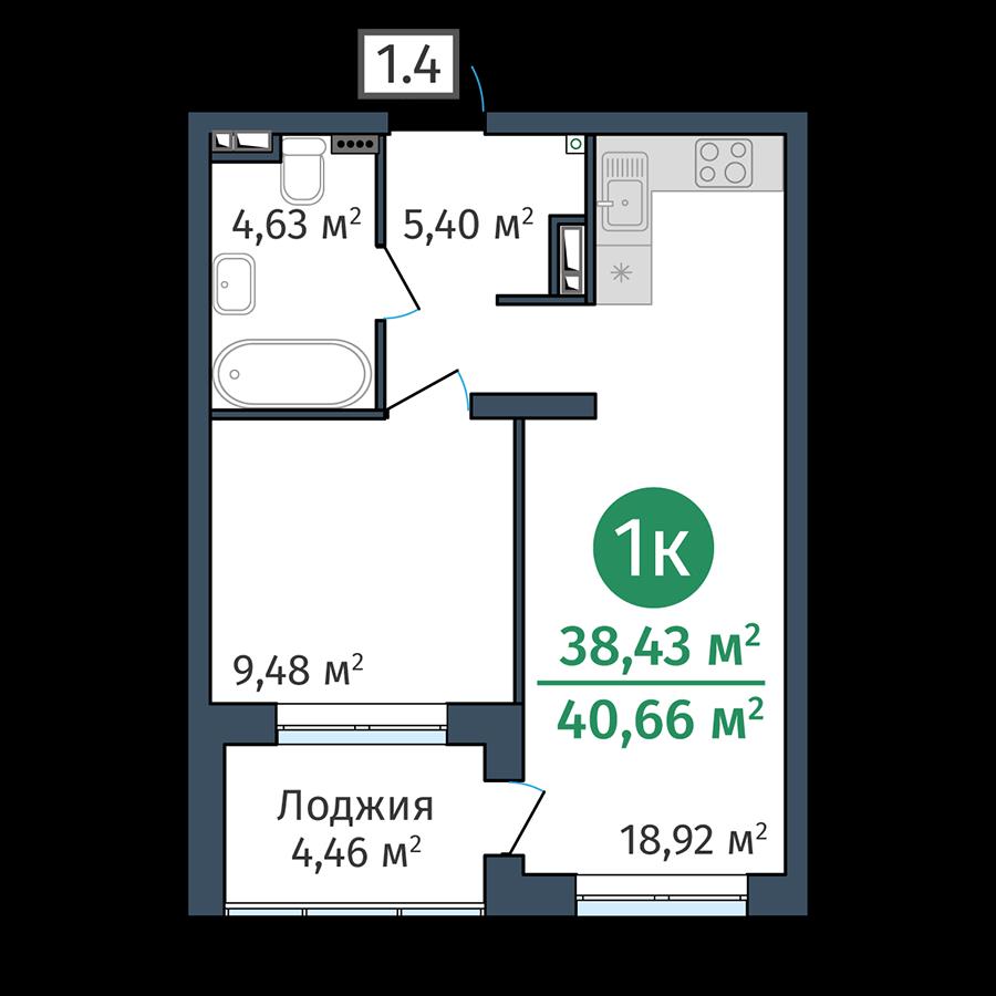 общая 38,43 м2, жилая 0 м2, кухни 18,92 м2 |