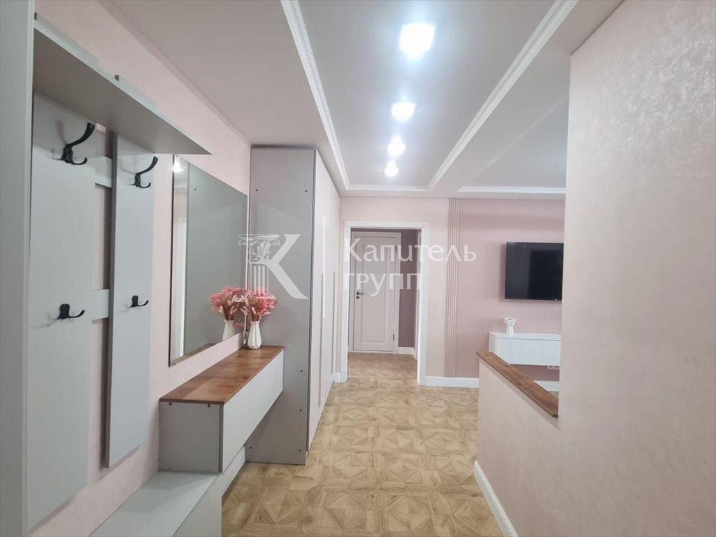 Квартира с кухней-гостиной и двумя спальнями в жилом районе «Зарека». Особенности планировки: вид во двор, разнесённые спальни, предчистовая отделка, мастер-спальня, терраса, терраса на крыше.