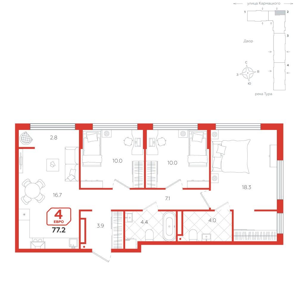 | Четырехкомнатная квартира по ул. , в Тюмени |