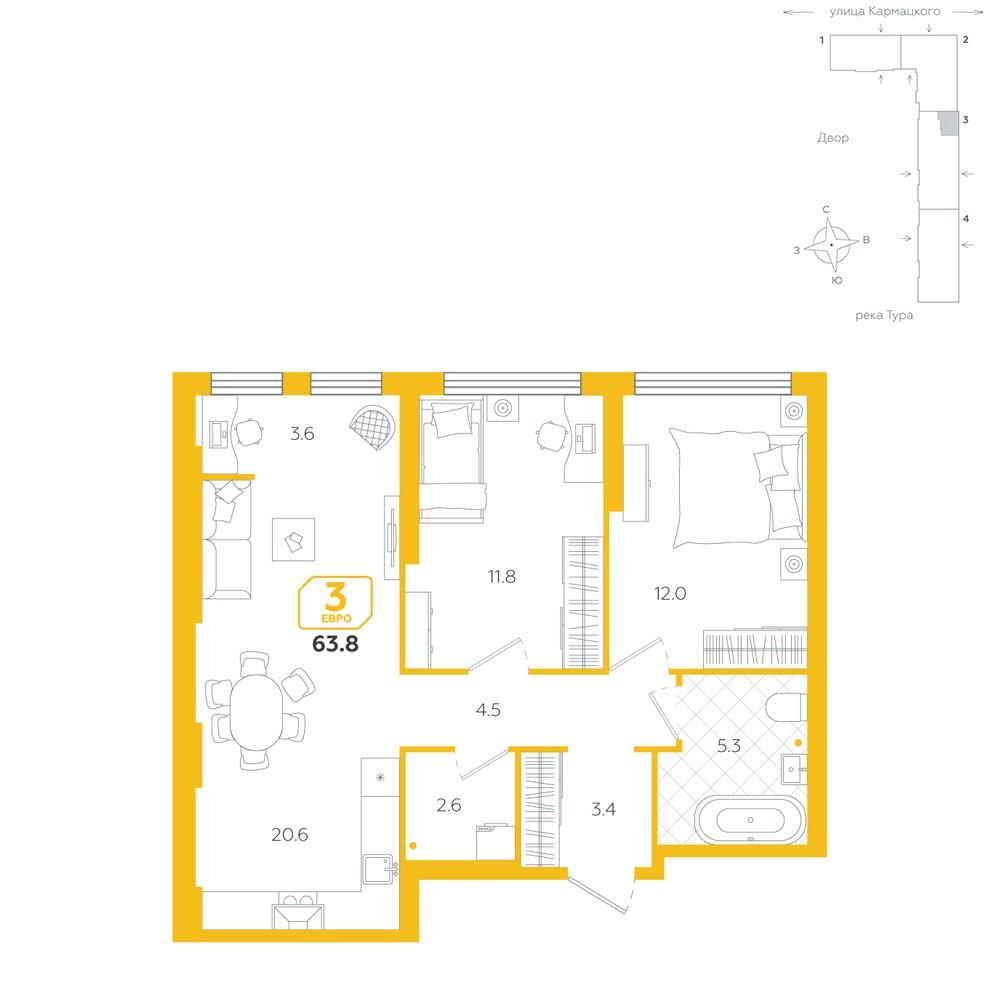 Трехкомнатная |