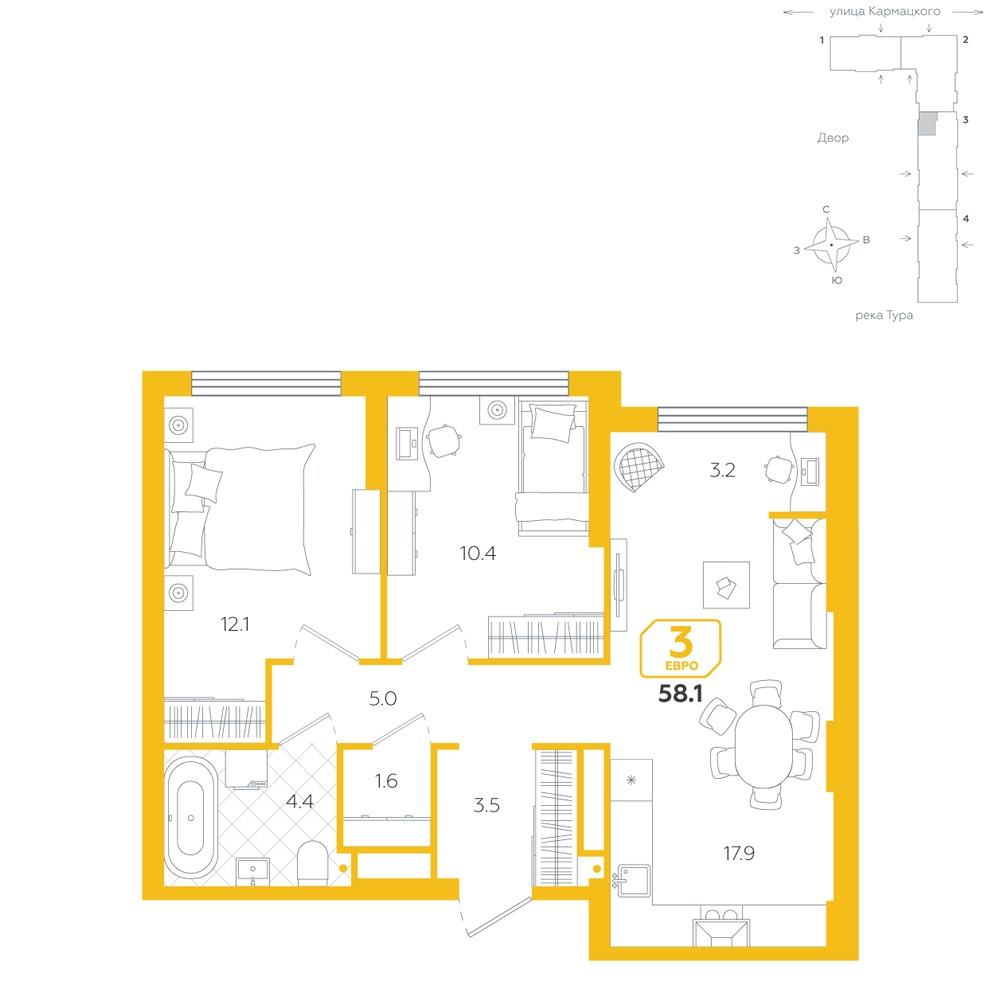 | Трехкомнатная квартира по ул. , в Тюмени |