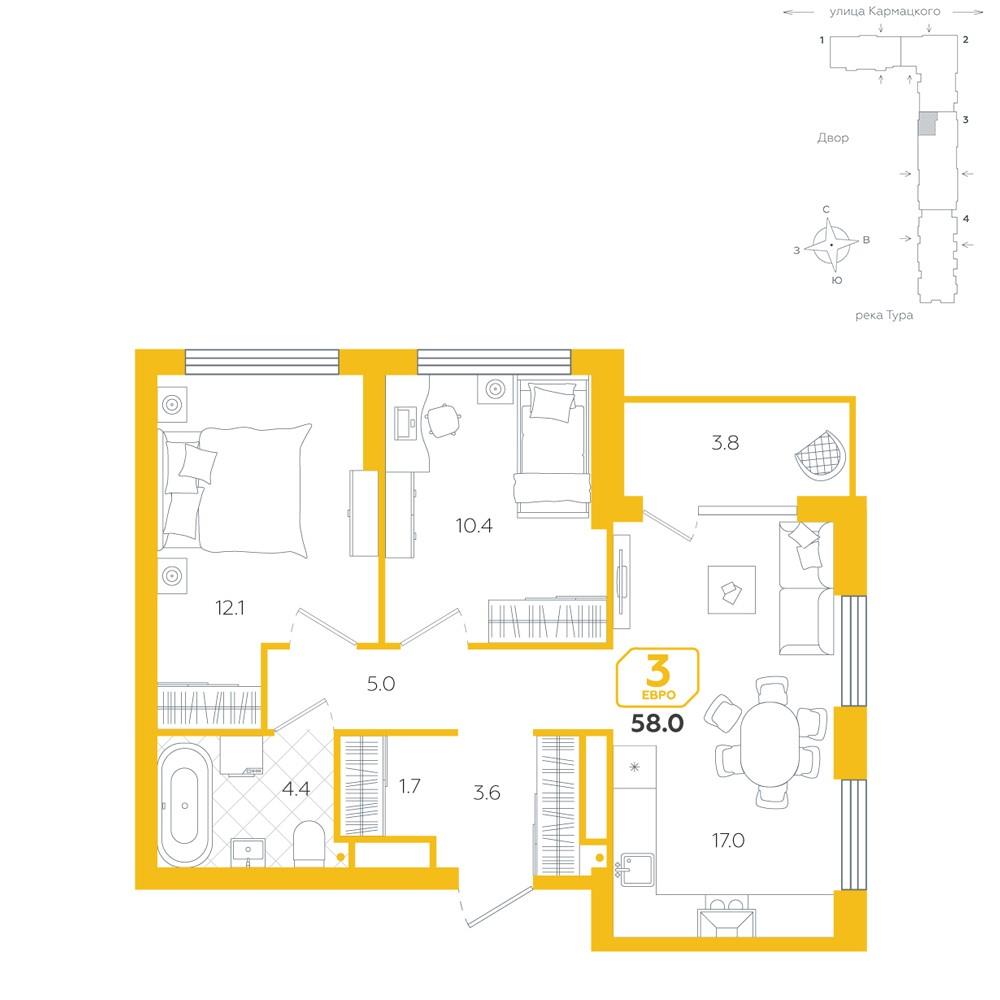 | Трехкомнатная квартира по ул. , в Тюмени |