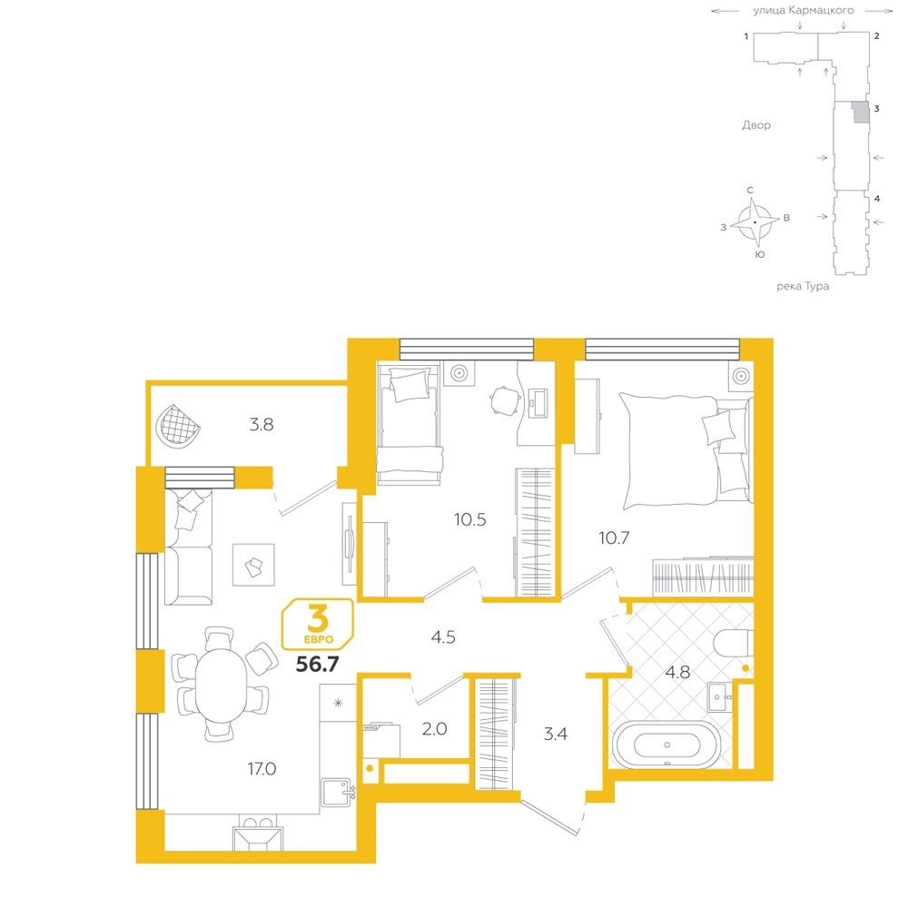 | Трехкомнатная квартира по ул. , в Тюмени |