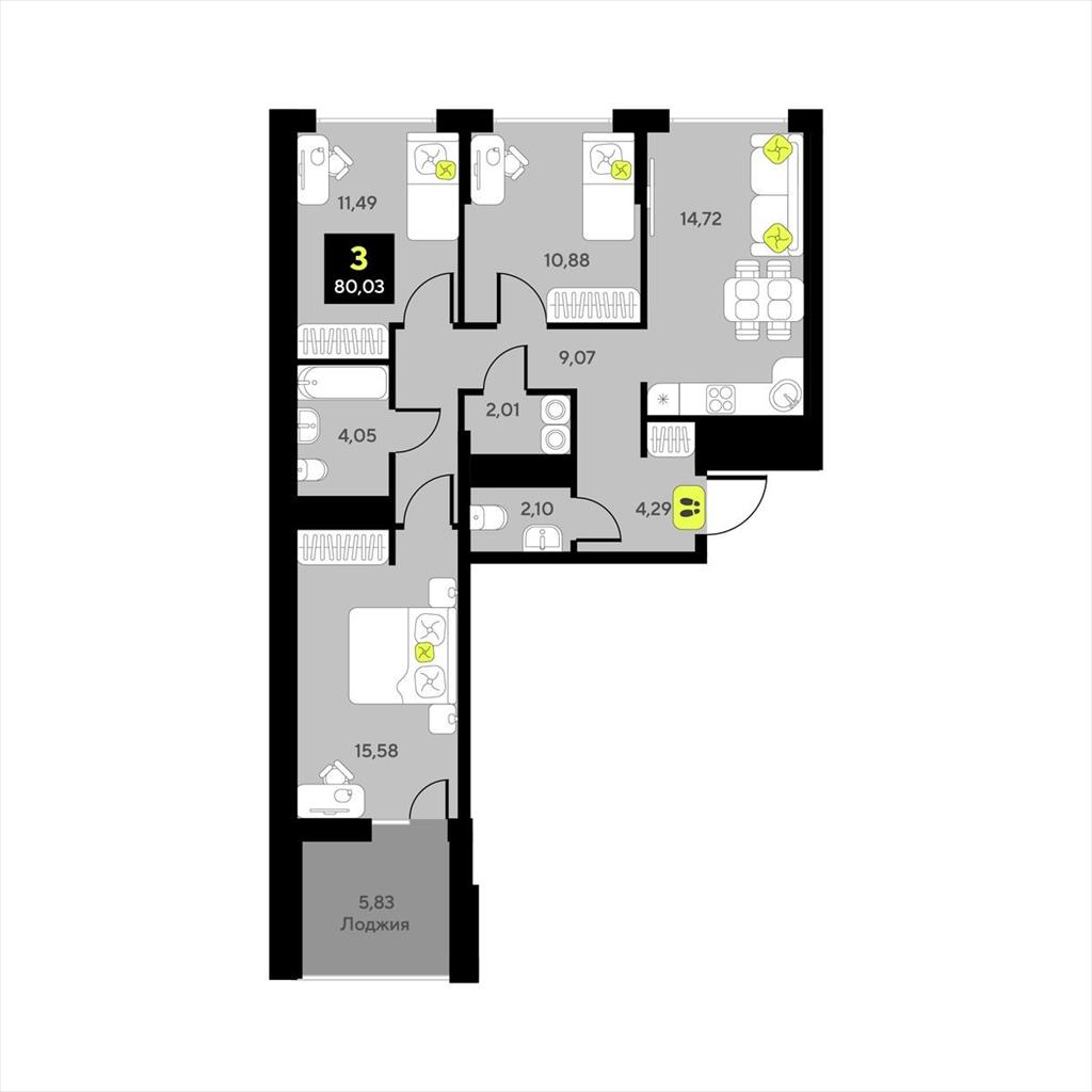 9 440 000 р. (117 956 р./м2) Подать заявку на ипотеку |