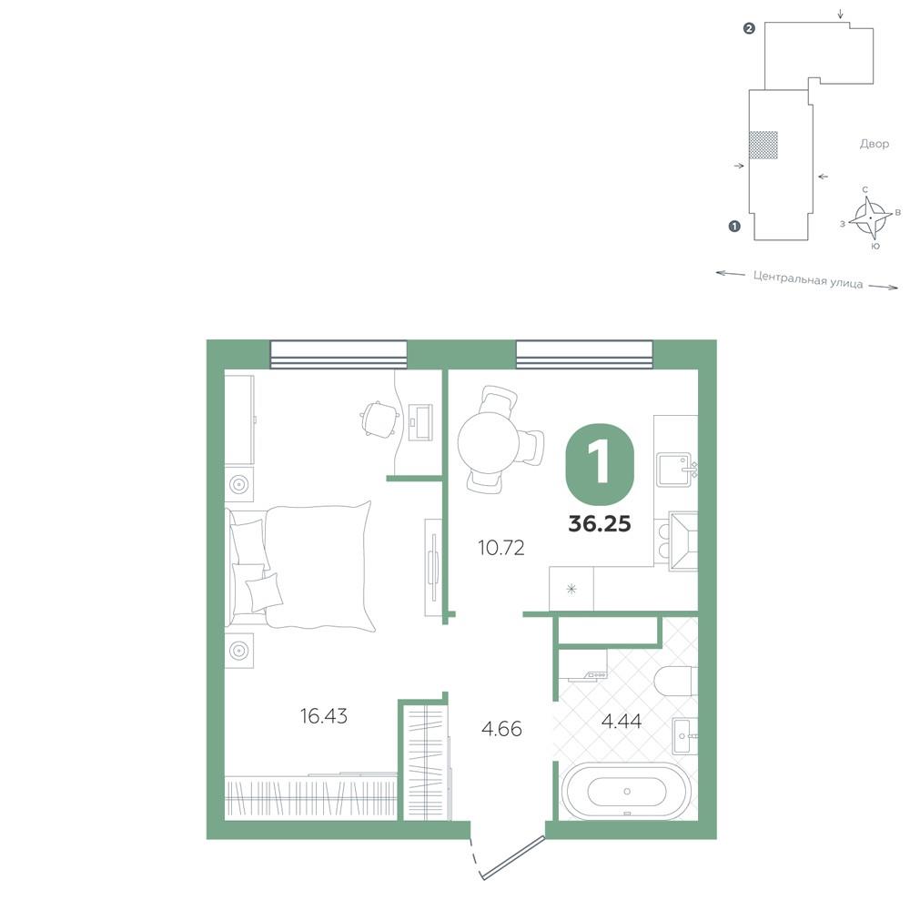 Однокомнатная квартира 36,25 м2 по ул. за 4940000 руб. |