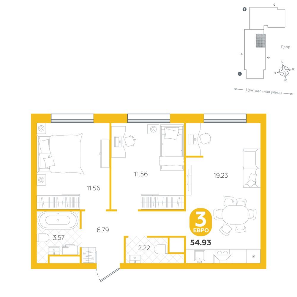 Трехкомнатная квартира 54,93 м2 по ул. за 6940000 руб. |