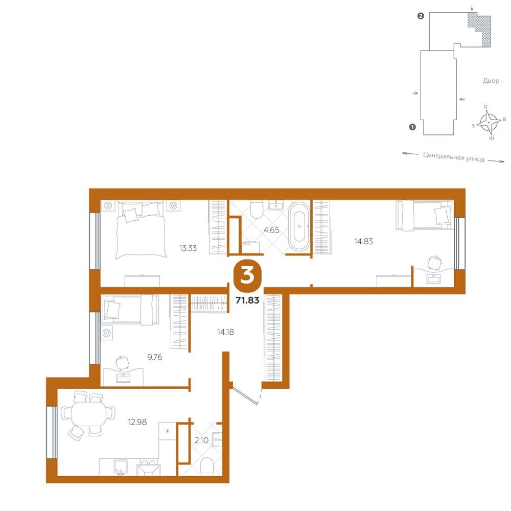 Трехкомнатная квартира 71,83 м2 по ул. за 8260000 руб. |