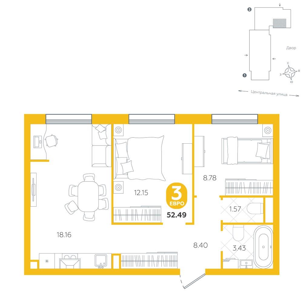 Трехкомнатная квартира 52,49 м2 по ул. за 6760000 руб. |