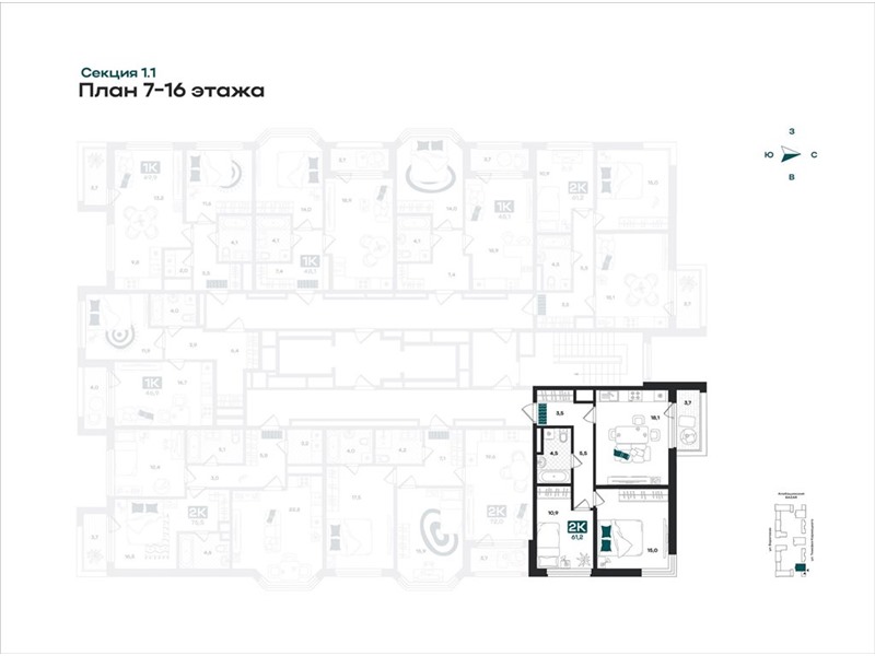 В секции 1.1 и 1.7 квартиры с готовым ремонтом, водонагревателем и «Умным домом»;