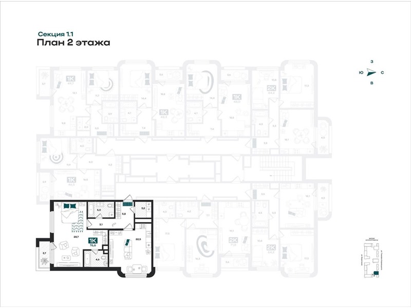 В секции 1.1 и 1.7 квартиры с готовым ремонтом, водонагревателем и «Умным домом»;