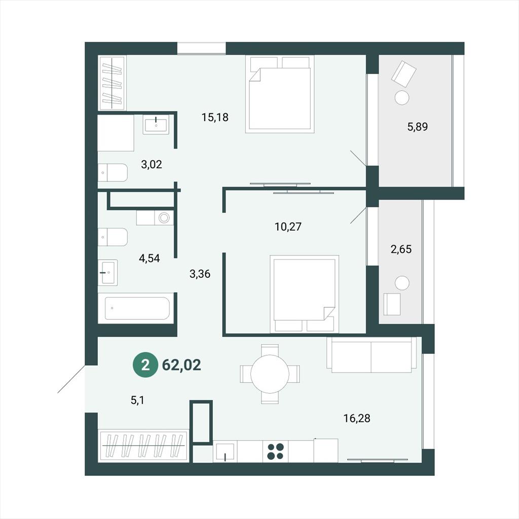 Двухкомнатная квартира 62,02 м2 по ул. за 10710000 руб. |