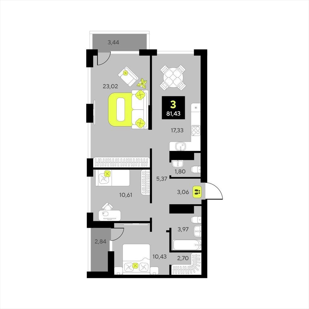 Трехкомнатная квартира 81,43 м2 по ул. за 12600000 руб. |