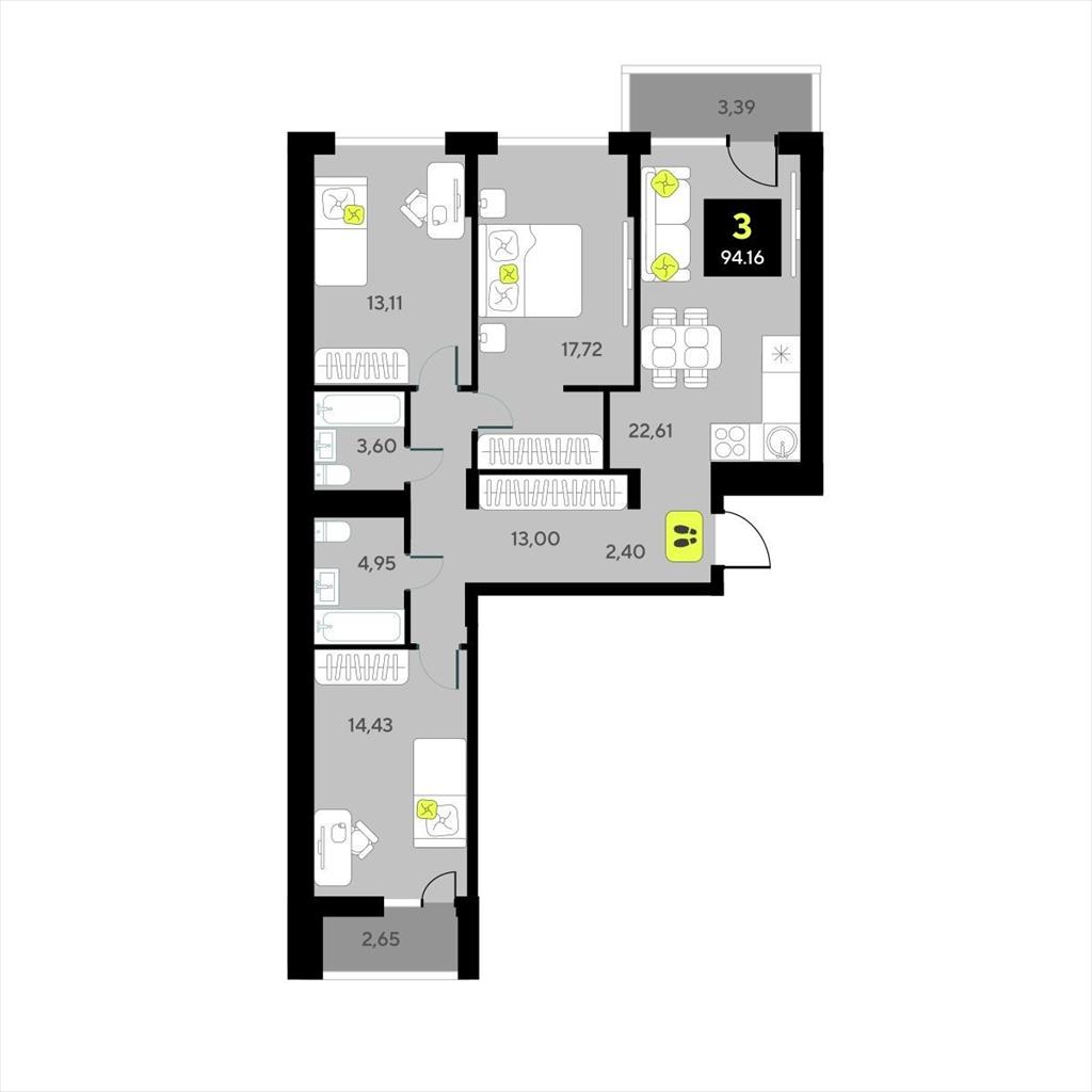 Трехкомнатная квартира 94,16 м2 по ул. за 13550000 руб. |